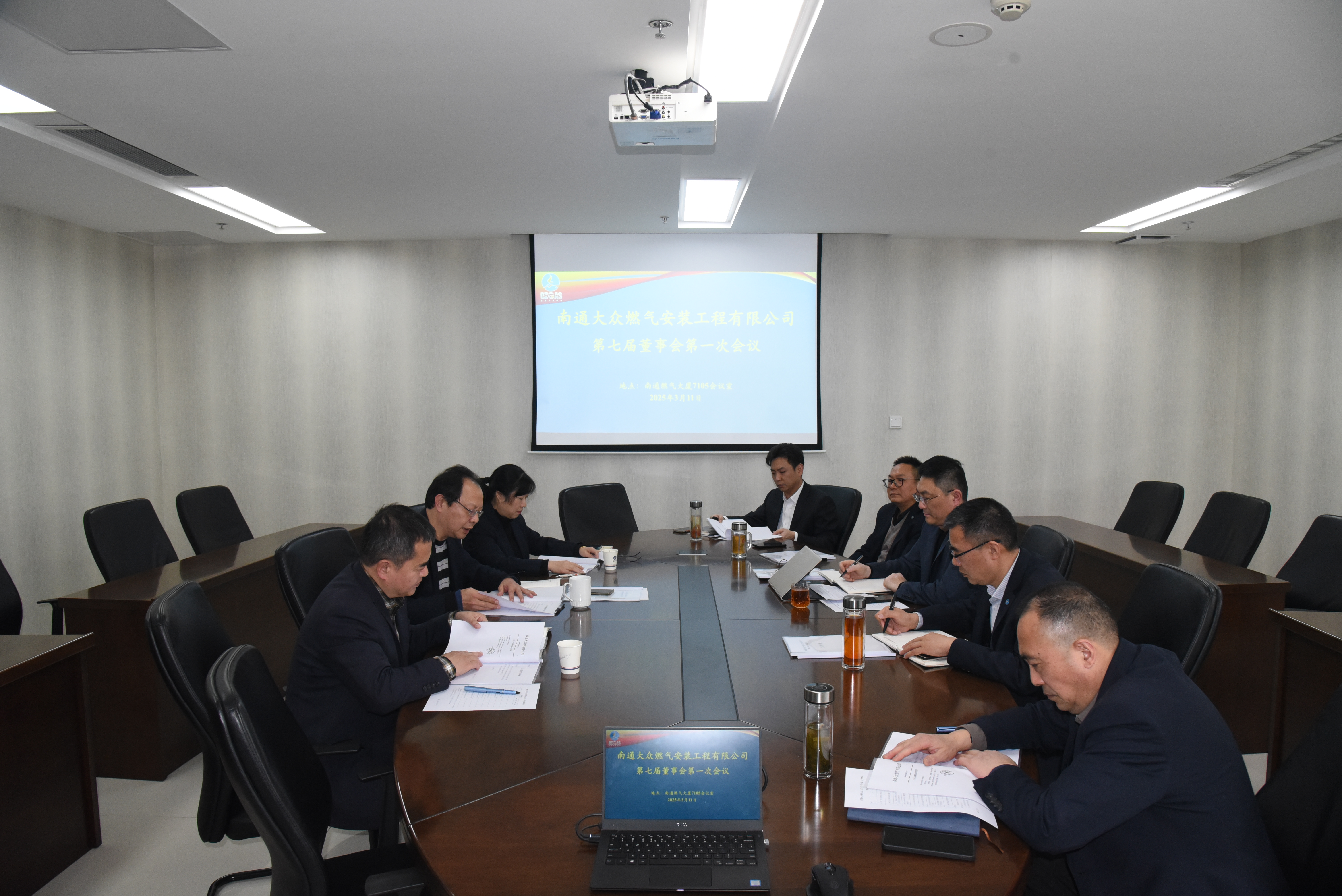3月11日,工程公司在燃?xì)獯髲B7105會議室召開七屆董事會一次會議,股東代表、南通大眾燃?xì)夤军h委書記、總經(jīng)理柯品劍及全體董(監(jiān))事出席了會議,會議由公司董事長李衛(wèi)兵主持。對2024年度工作情況、財務(wù)決算報告、績效考核情況以及2025年度工作計劃等進(jìn)行了審議。